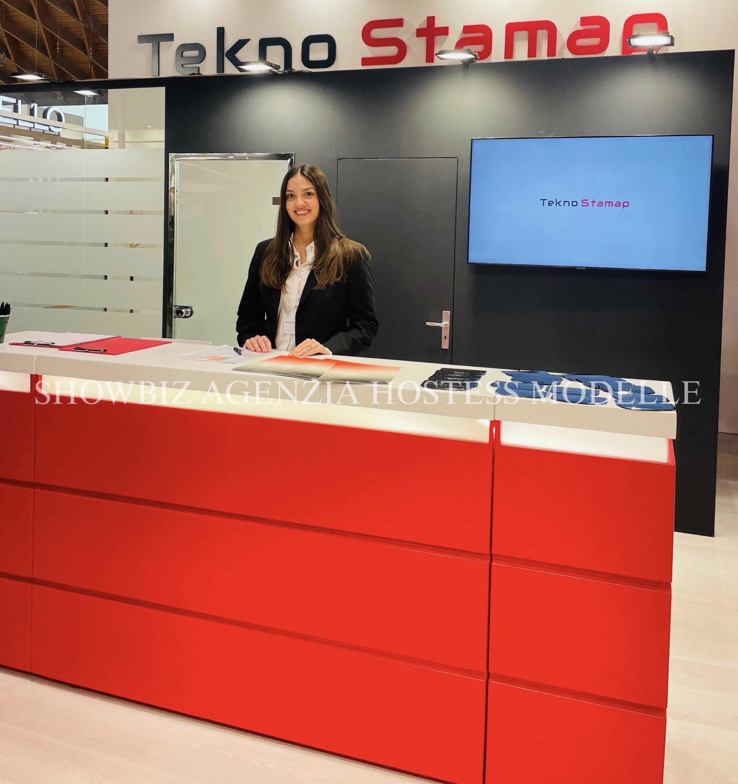 La nostra hostess Showbiz è pronta ad accogliere i visitatori con professionalità ed eleganza, occupandosi dell’accoglienza clienti e del servizio bar allo stand ☕🍸